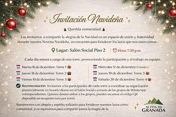 los invitamos a compartir la alegría de la Navidad en un espacio de unión, fraternidad y encuentro, participando en nuestra Novena Navideña 2025, una oportunidad para fortalecer los lazos que nos unen como comunidad.